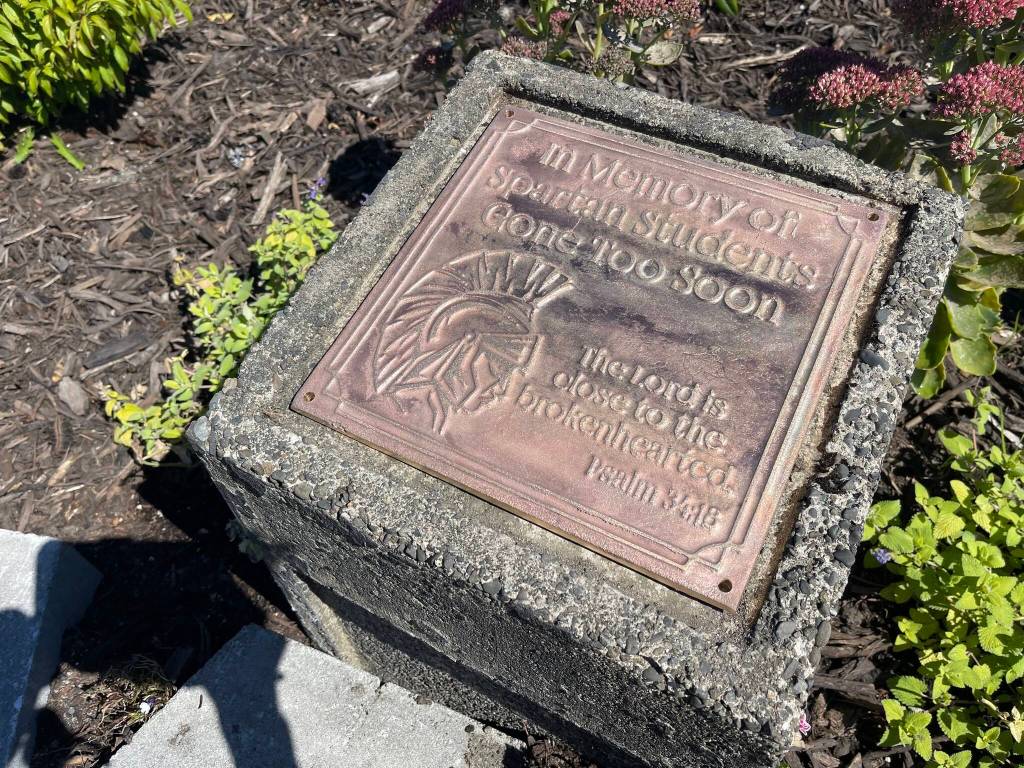 The new Bogachiel Garden Club project at the Transit Center also updated signage at several other memorials. Seen at the bend in the new raised garden was a memorial to some of the young students who left us too soon. The base of that memorial was still in good shape, but time had taken a toll on the plastic engraved plaque.