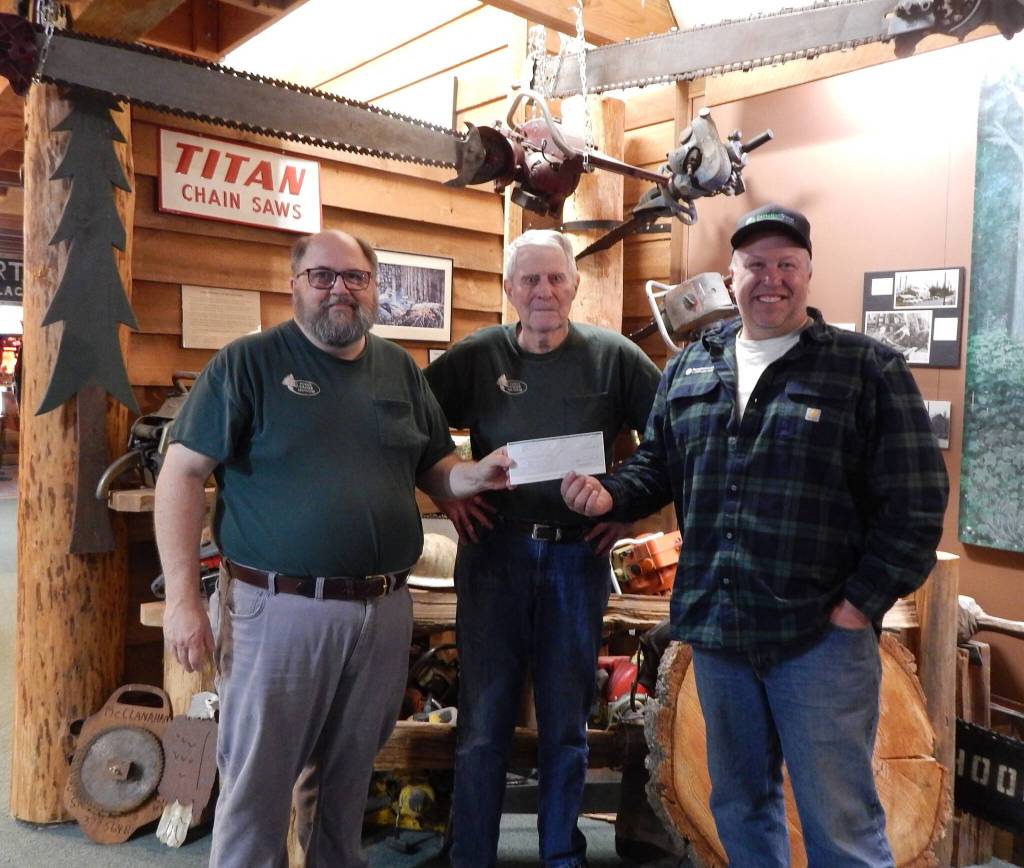 The Forks Timber Museum recently received a $4,750 boost from Campbell Global, presented by Wes Romberg, the company’s Western District Manager with offices in Port Angeles.