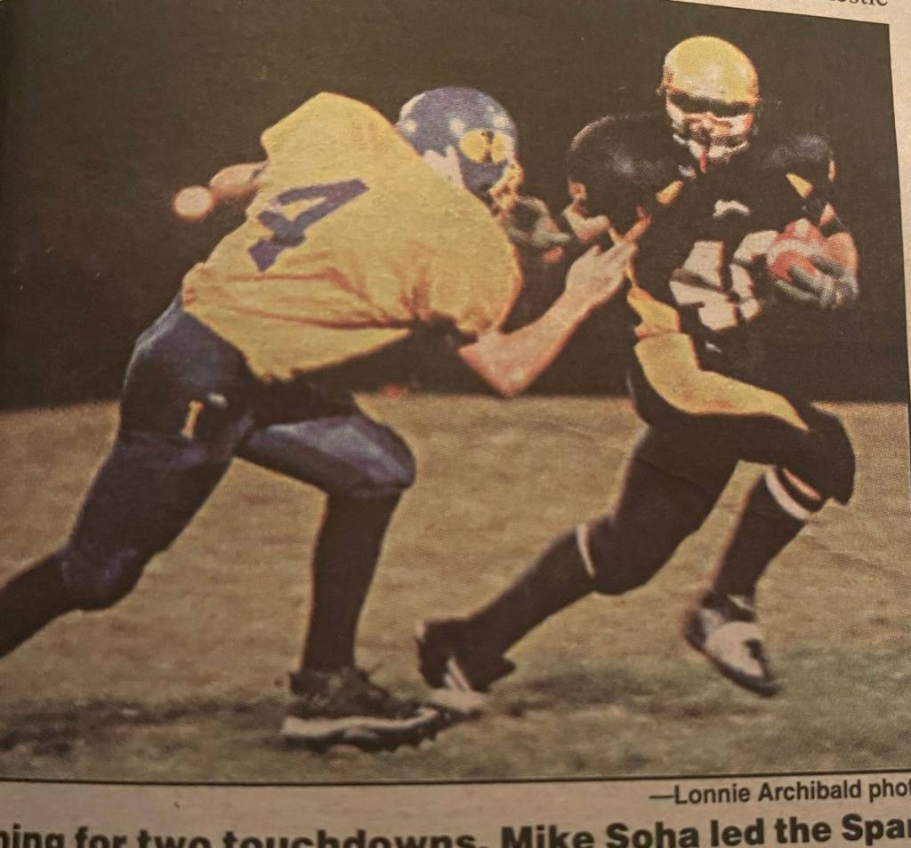 Running for two touchdowns this week in 2000, Mike Soha had led the Spartans to a 48-0 victory over Ilwaco (photo). Jess and Titus had been married in August and a story and photo shared their wedding activities (photo). Bill and Kitty Sperry had donated office equipment to the Quileute Tribal School office. In a letter to the editor Corlie Whitehead, Pool Promotion Committee chair, urged voters to vote yes for the start-up levy for funds to get the pool going.