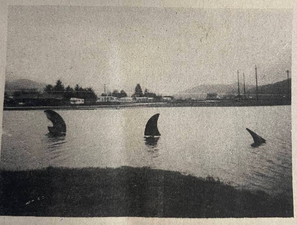 Fifty years ago this week continued stormy, rainy weather had continued to cause damage to roads including the road to Rialto, flooding on Whitcomb-Diimmel and a home on the Hoh had been swept down the river. The Forks Lions had purchased $1,300 worth of Christmas decorations to be placed on downtown light poles. The rains had also filled up Spartan Lake and Forks teacher Ron Thompson had created shark fins that were placed in the water ( photo).