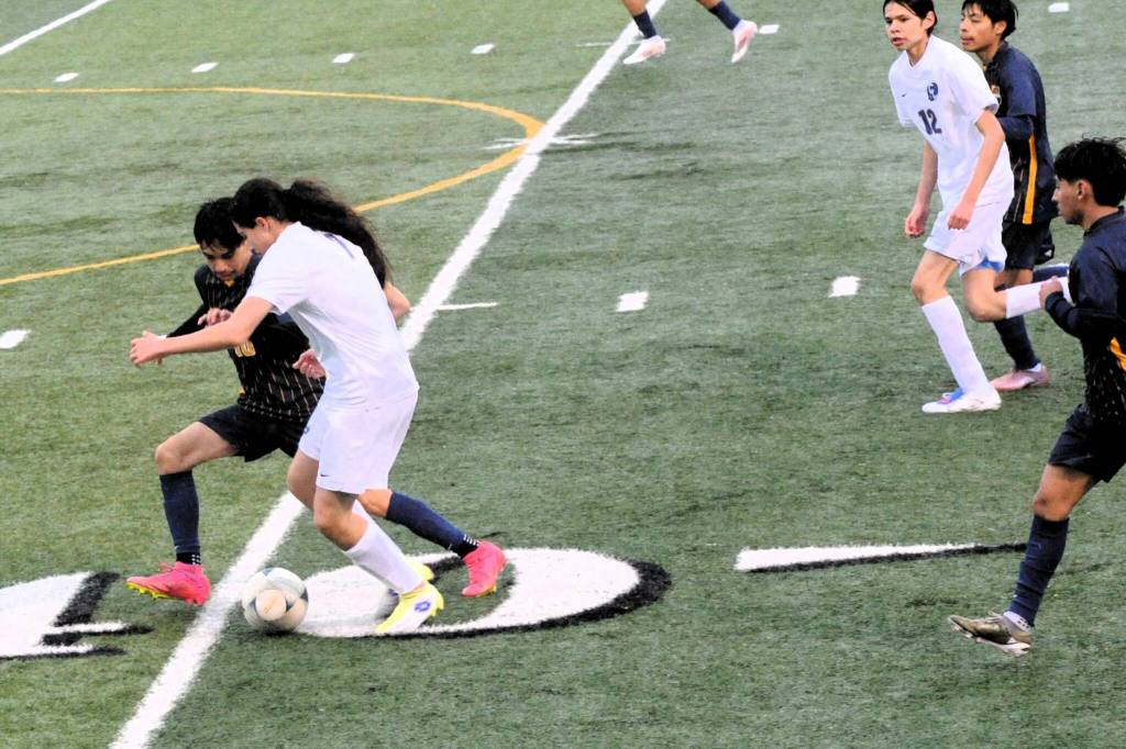 Spartan Margarito Gonzalez Black competes with Chief Leschi for ball control on March 12 at Spartan Stadium, where the Spartans defeated the Warriors 17 to 0.