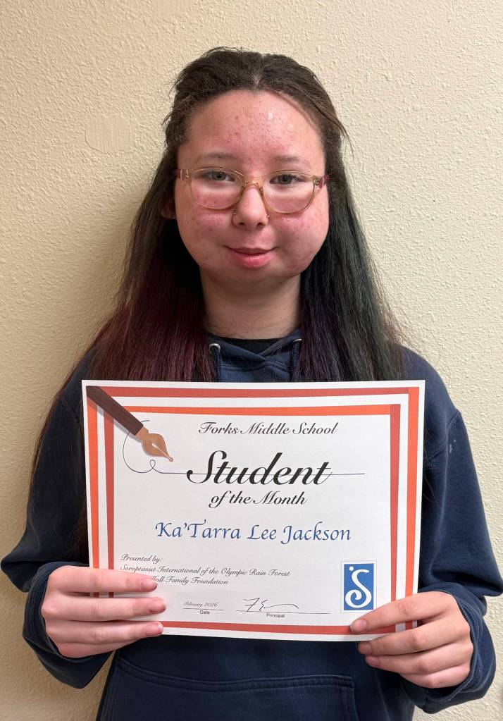 Teachers praised Cody for his strong character and work ethic. His CTE teacher, Mr. Feasel, said Cody represents the core ideals of Forks Middle School—being respectful, responsible, and safe—while consistently serving as a positive role model. He added that Cody is a dedicated learner who takes pride in his work and demonstrates a positive attitude that will lead to future success.