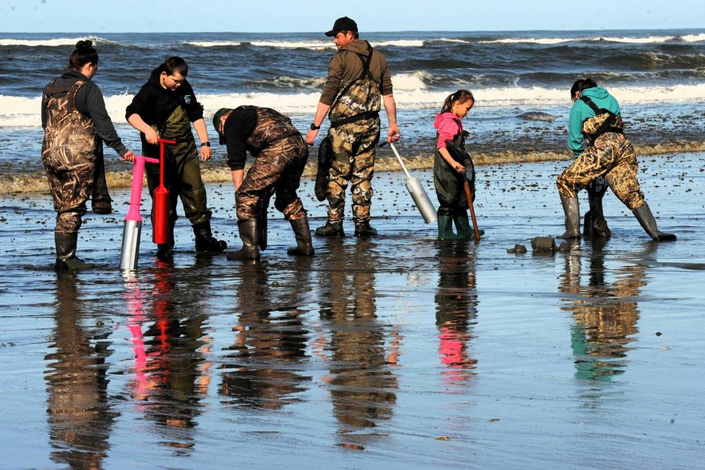 Clammers search for the popular razor clams during the spring at Copalis Beach along the Pacific Coast last season. Once again, the clam season is open for daytime digging. Always check the latest regulations, as they may change weekly.