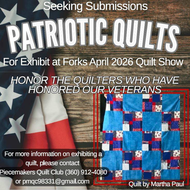 To honor Martha, we aim to highlight her Patriotic Quilts at our show from April 17 to April 19, 2026. If you own one and are willing to donate it, please contact Mary Howell at 360-912-4080 or pmqc98331@gmail.com. I can store the quilts, or you can drop them off on Thursday, April 16, in the afternoon at the high school gym located on Spartan Avenue.