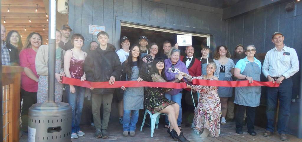 Owners Felicia Larson and Rachel Breed, seated center, cut the ribbon Friday evening at their new restaurant, Marble and Oak, 640 S. Forks Ave., marking the official opening with co-owner Arian Goodson and Forks Chamber Director Lissy Andros standing behind them. Friends, family, and staff gathered to celebrate as the ribbon fell, kicking off an evening of great food and drink. The project first began in March 2025.