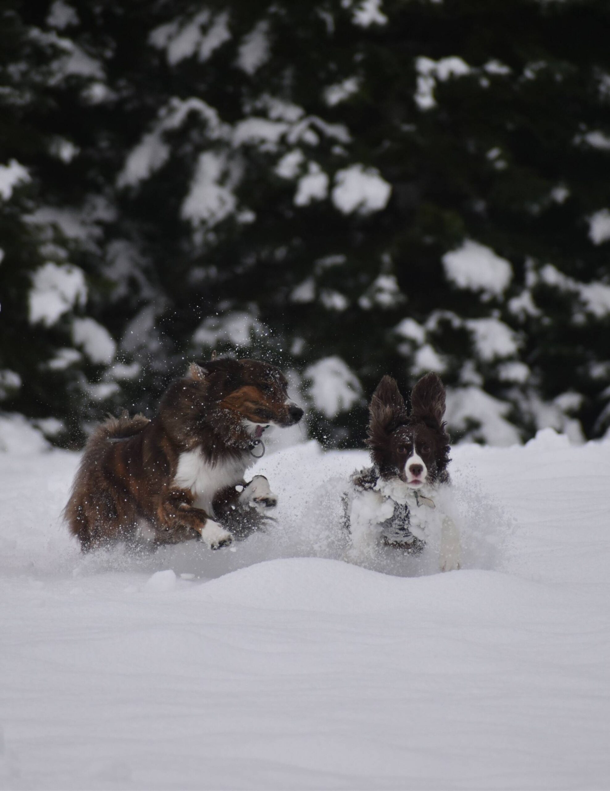 Kids and even dogs loved the snow. Here Obi and Grace are having a good time.