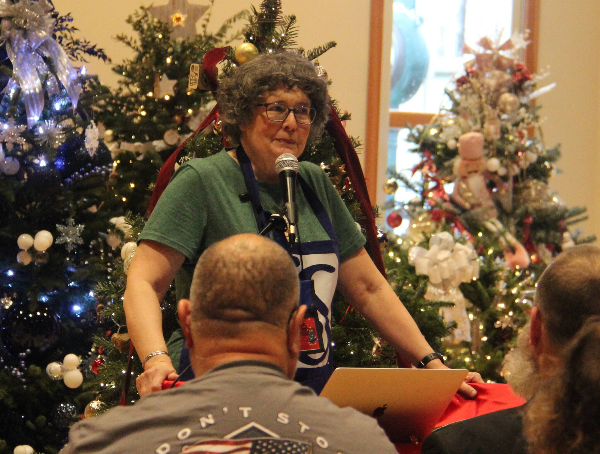 Soroptimist Janis Berry-Flagg welcomed a large crowd to the Rainforest Arts Center on Sunday afternoon for the annual Festival of Trees Auction. Flagg shared how the auction comes together and all the entities who help make it happen.