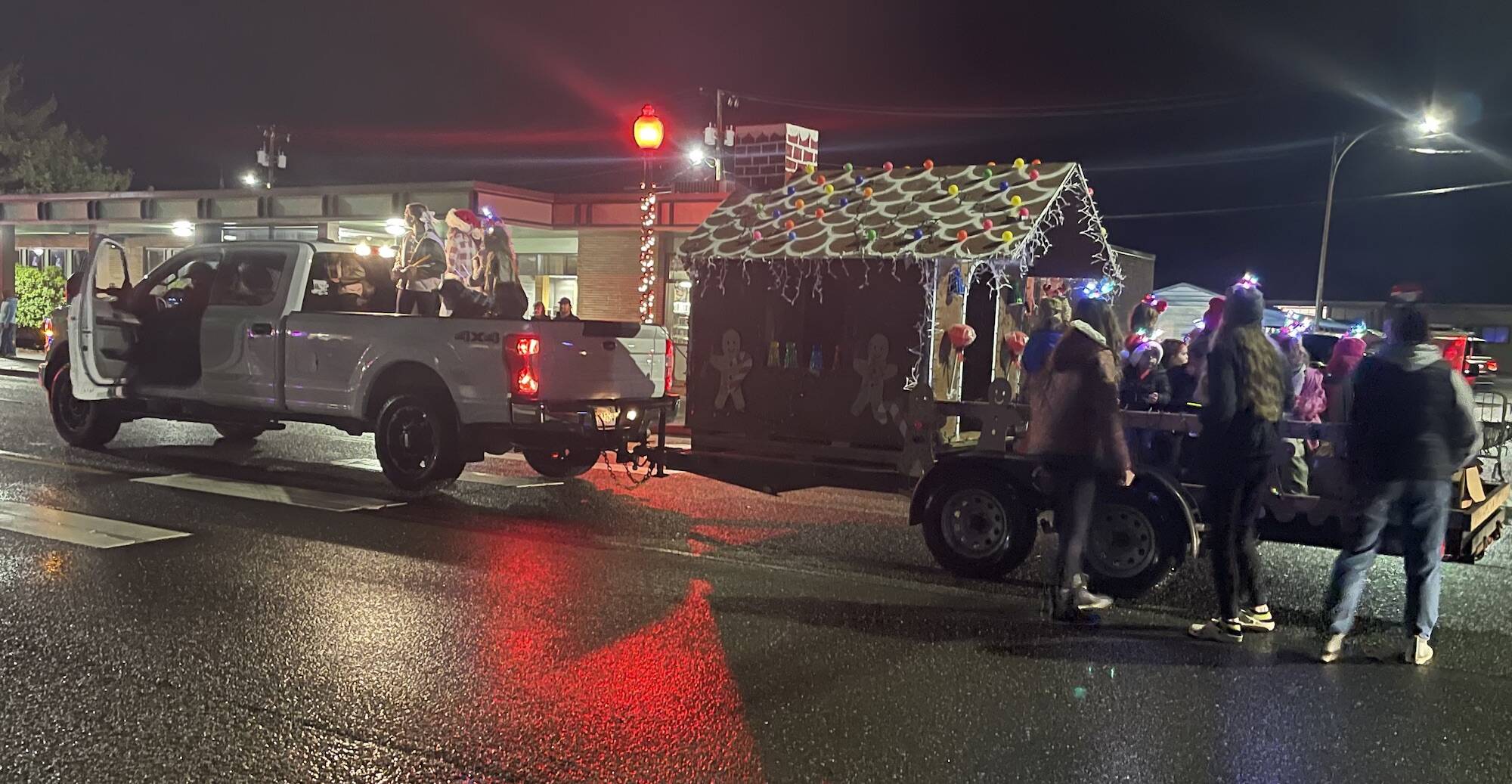 It was lights out during the parade Saturday night but never fear …Taylor Soha shared, “Our lights on our gingerbread house went out right when the parade started. My husband hopped out of our truck and sprinted to our house to get diesel for our generator and got back in time to add fuel to the generator and get the lights back on!”