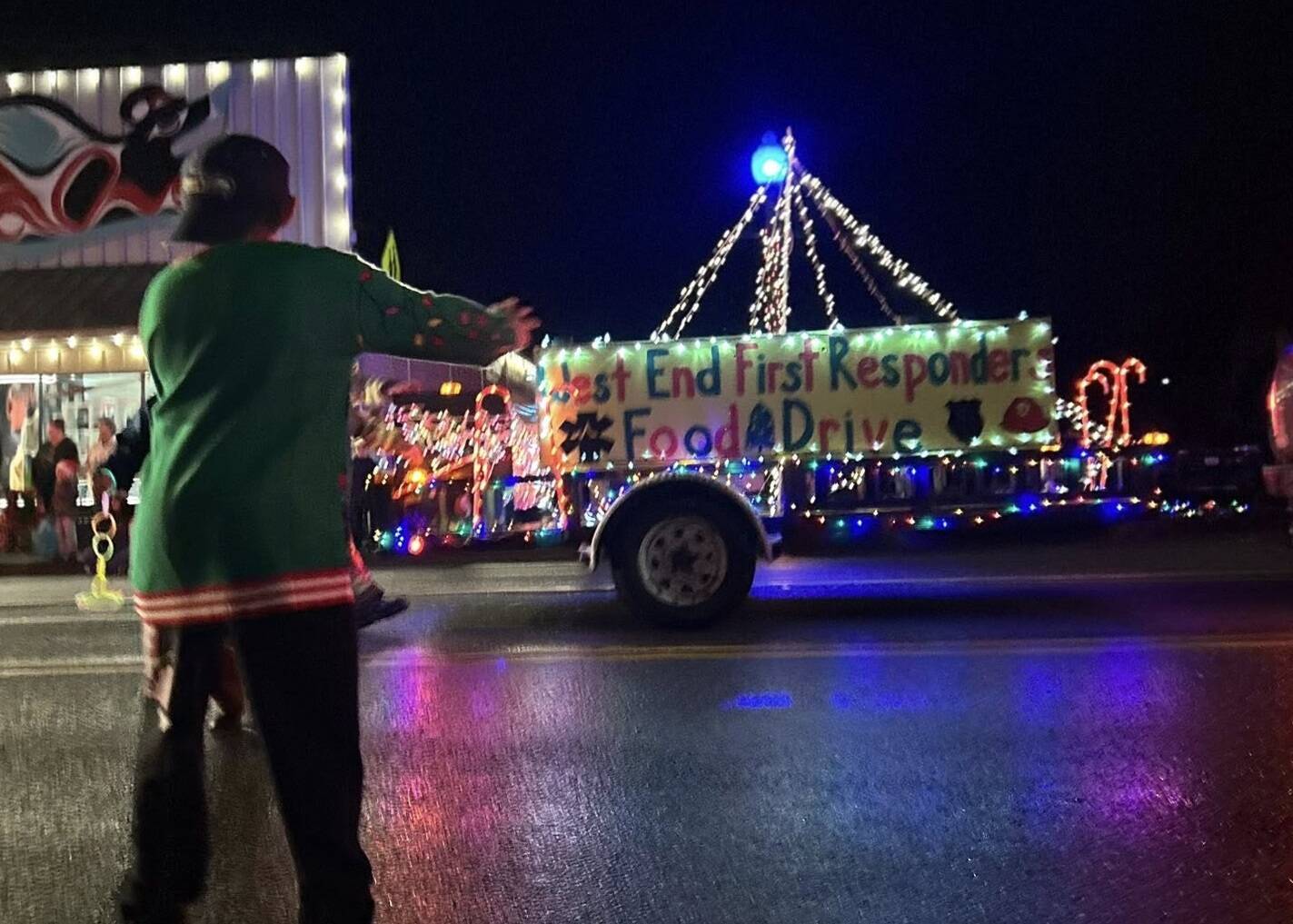 First responders collected food items during the parade on Saturday night. Watch for other food drive activities by first responders during the holidays.