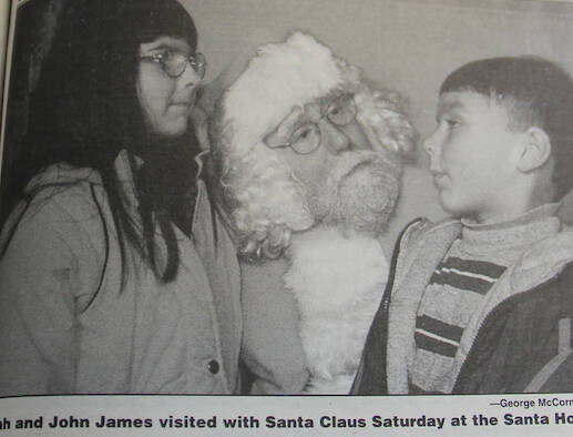 In the first WEBPA Santa Bucks drawing of the 1999 Holiday Season winners were Chris Hoke, Aleda Adams, and Howard Beglinger. Millennium Digital Media was offering “cable theft amnesty.” Santa was seeing clients at the Santa House located next to Sully’s; Sarah and John had shared their wish list with him (photo). More letters about the situation at the Forks animal shelter were published. In Moonlight Madness ads, Sully’s was planning 75¢ hamburgers! The school Mentorship Program had collected food for the Elks Club food baskets, Ashley and Brice were featured in a photo (photo).