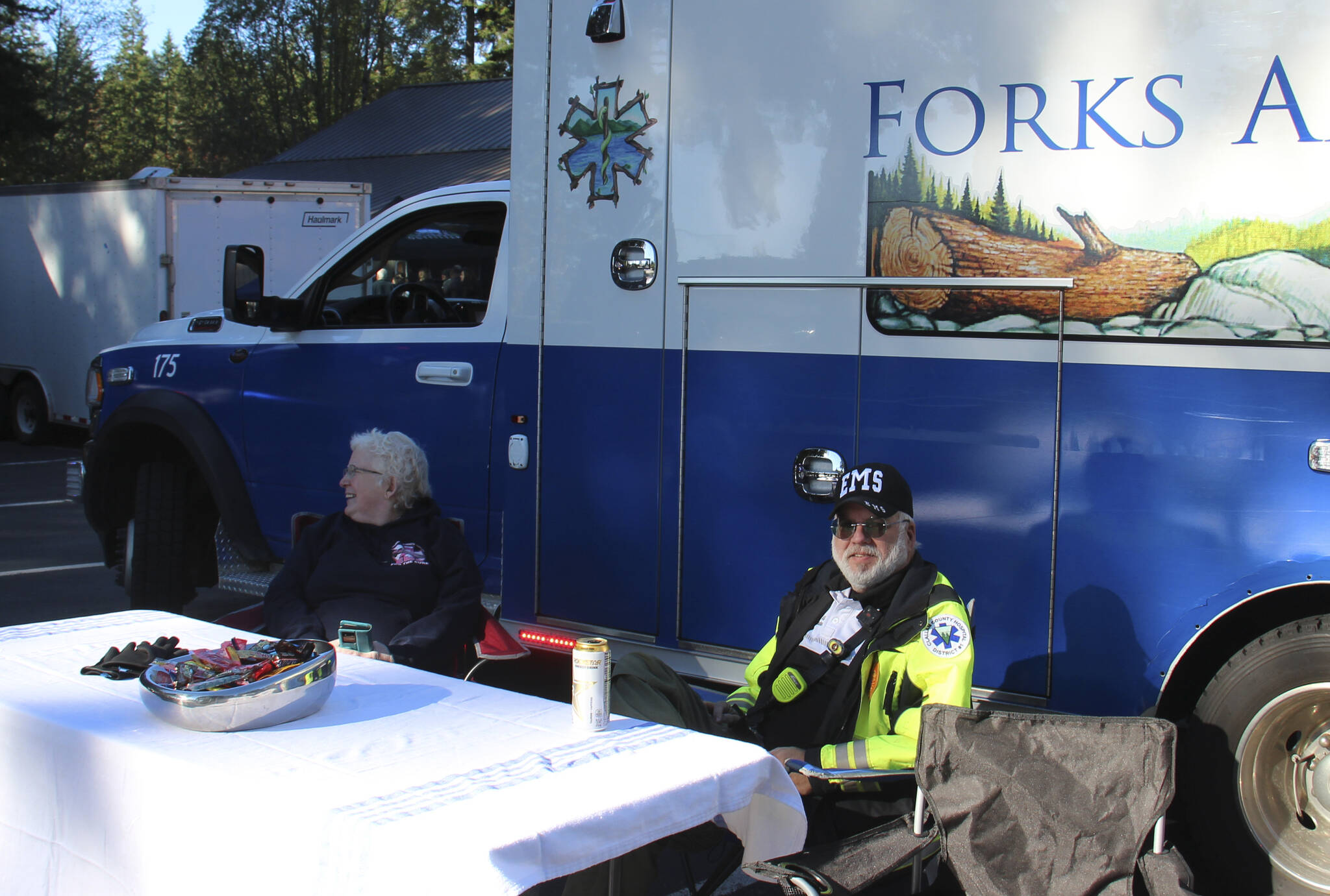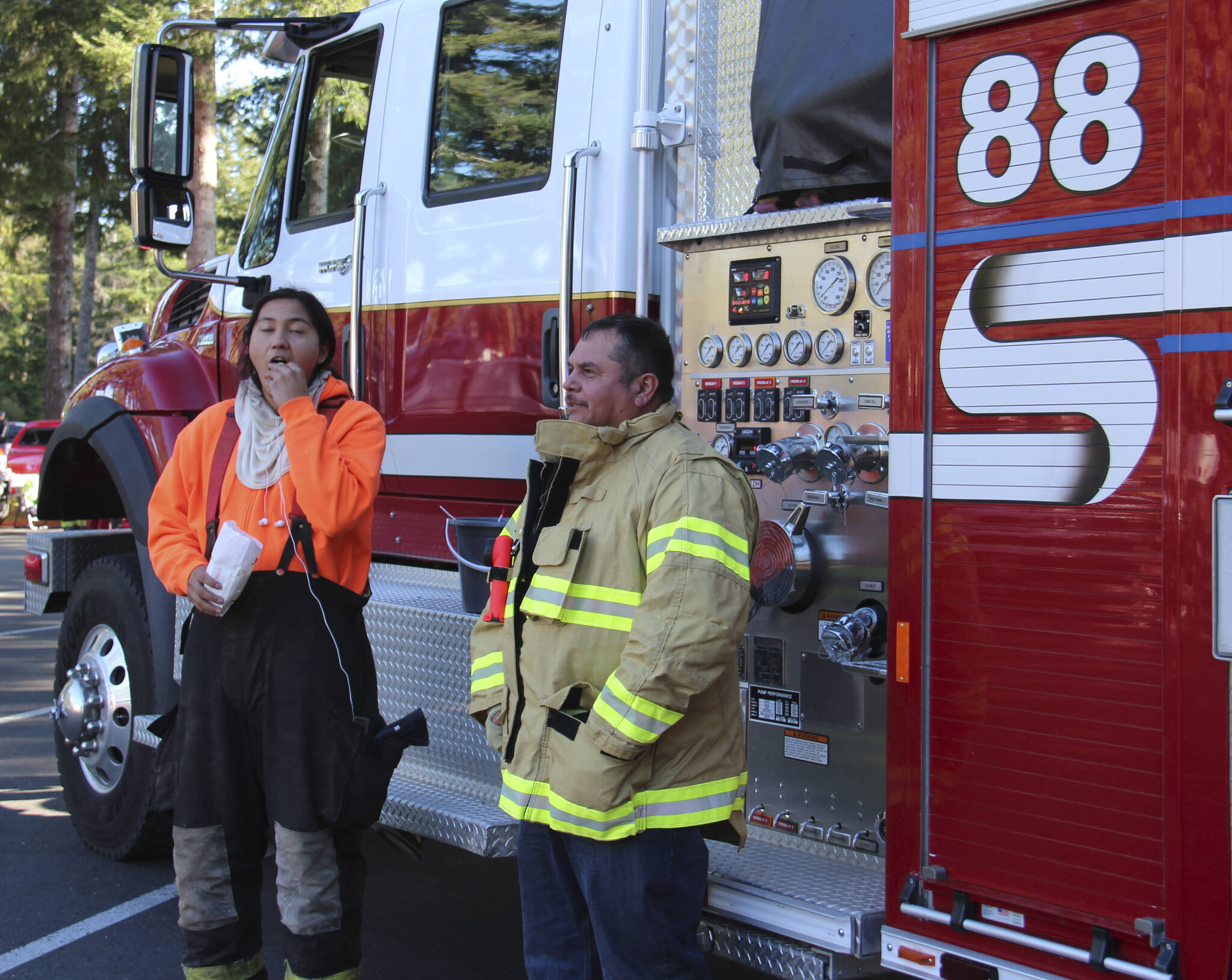 Forks Fire Department and Sparkey offered the Forks Forum Editor some candy!