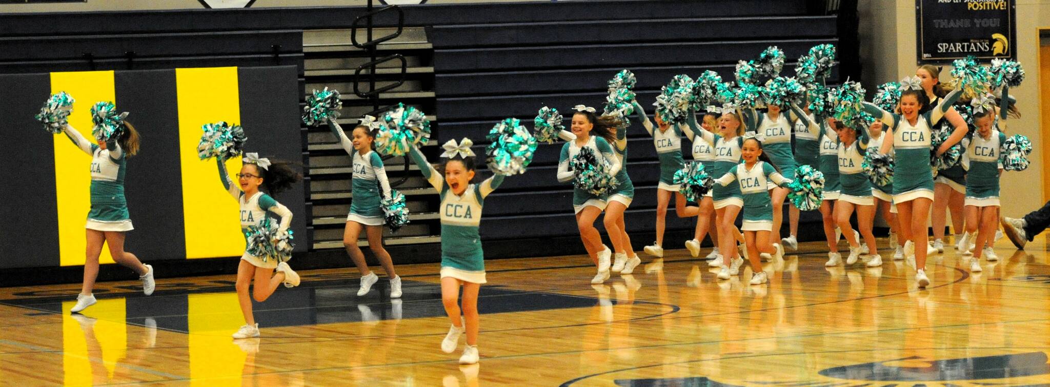 These young cheerleaders from the Coastal Cheer Academy performed at halftime during the Forks Boys vs Chief Leschi game on Thursday, Jan. 16 in the Spartan Gym. The group has been busy, also traveling to cheer competitions around the area.