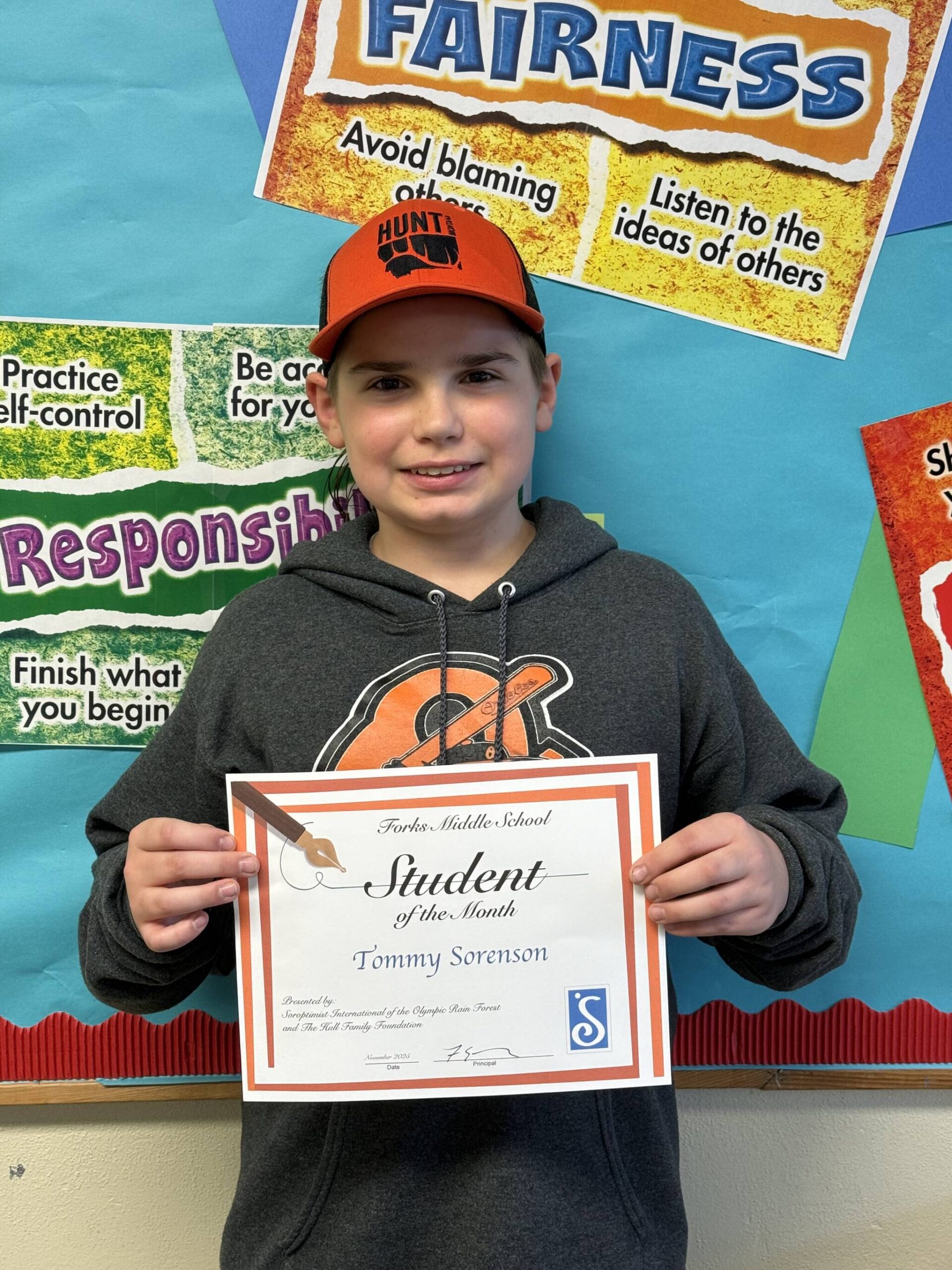Howard Hoskins was chosen as FMS November Student of the Month for 6th grade. Howard’s favorites include; peach cobbler dessert, the color yellow, history class, dogs, playing soccer, football, and baseball, and playing soccer video games. Howard wants to be a professional athlete when he grows up. Howard’s social studies teacher, Mrs. Echeita said “Howard always has a pleasant and positive attitude. He cares deeply about completing his assignments and doing his best.” Mrs. Klebe, his ELA teacher said “Howard is a shining example of what it means to be Student of the Month. He has one of the best senses of humor—he knows how to make others smile while still staying respectful and positive. Howard is genuinely kind to everyone he interacts with and goes out of his way to make sure others feel included. He is consistently hardworking, always giving his best effort in class and pushing himself to improve. On top of that, he is quick to help classmates who are struggling and shows real leadership through his actions. Howard truly makes our classroom a better place every single day.” His PE teacher, Mrs. Highfield said “Howard is kind and polite. He always asks if he can help. He is excited to learn.” Miss Hunley, Howard’s math teacher said; “Howard is an exceptional student and an absolute pleasure to have in class. He consistently works hard, approaches every task with a positive attitude, and always has a smile on his face. In math, he gives his best effort every day and shows a strong willingness to learn and improve. Howard is also incredibly kind and supportive of his classmates. He willingly helps others when they are struggling and does so with patience and encouragement. His positivity, dedication, and genuine care for those around him make him a standout student and a wonderful member of our classroom community. Howard’s music and band teacher, Mrs. Sanger-Rasmussen added, “Howard is a wonderful student. He is very respectful and is always willing to learn. He pushes through all of his struggles and comes out as a smarter and stronger person and musician on the other side. Keep up the great work, Howard.” Howard would like to thank his mom, coach Keith Weekes, Tanner, and his family members for supporting him. Congratulations, Howard!