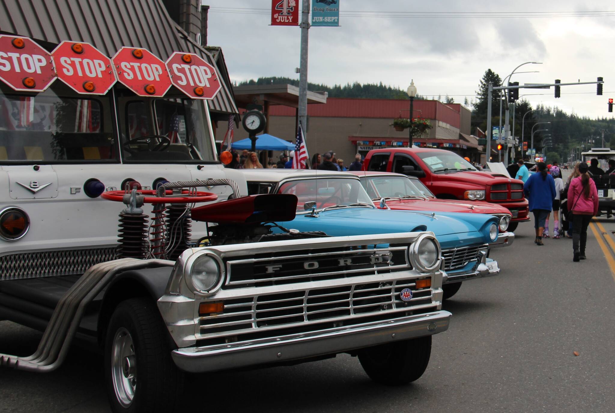 While the temperature was not hot …many car enthusiasts still gathered downtown Saturday night to hear some live music, visit, and enjoy the Forks Lions Club Beer Garden. Since other activities and weddings were also happening that night …food choices were few …so the Lions scrambled and got the grill going for some burgers and hot dogs! Photos Christi Baron