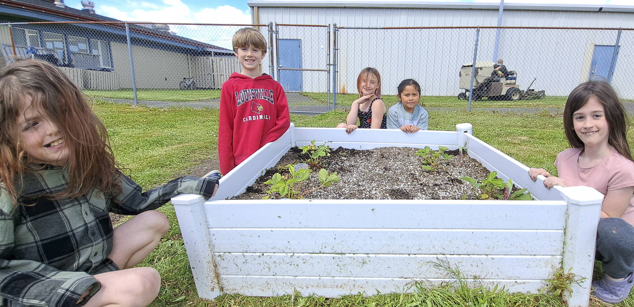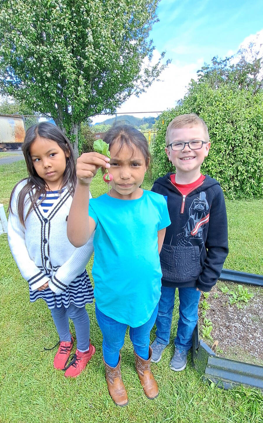 Earlier in the spring Mrs. Joynes’ second-grade class at Forks Elementary weeded some raised garden beds in the school garden and planted them with help from a Bogachiel Garden Club grant. Last week Joynes took photos of their progress and harvested some of the bounty.