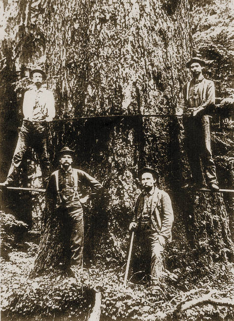 We could hardly believe our eyes the next morning. The log was eight to ten feet through at the butt, and twenty-five to thirty inches at the top, and the length was close to one hundred and fifty feet. Mr. Sawyer reported the log to be eleven and one-half feet in diameter at one end, and two hundred feet long, but I am sure that these measurements were too large.