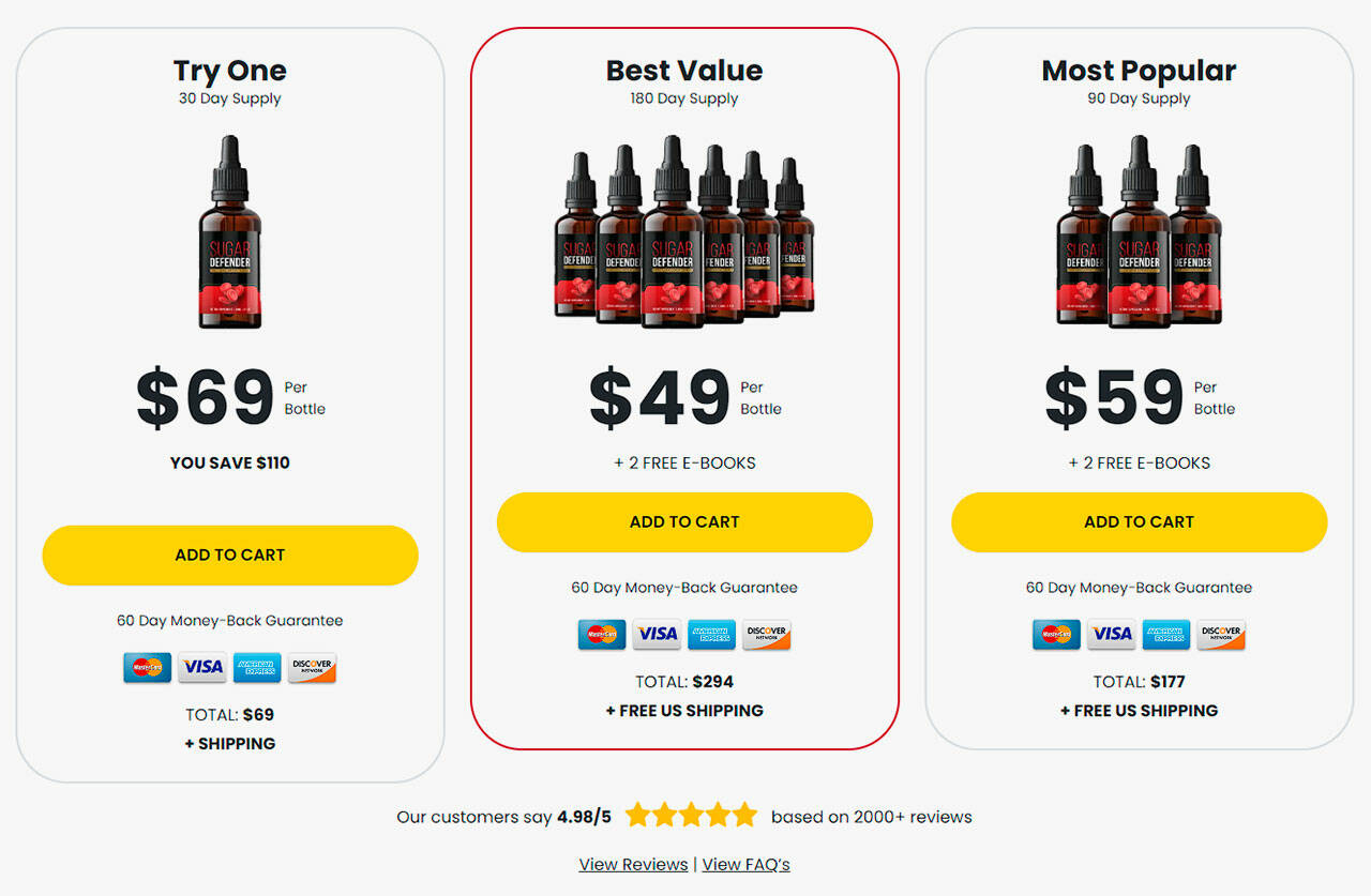 Sugar Defender is available on the official website in three different packages, with the potential to enjoy significant discounts and free gifts when purchasing multiple units. These deals include: